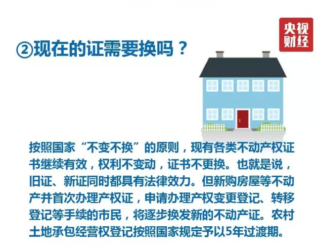 但就權(quán)利人的實(shí)質(zhì)影響而言,不動產(chǎn)登記證明只是房產(chǎn)證、國土證等不動產(chǎn)統(tǒng)一后的新證明,可以為入學(xué)、就醫(yī)、出國等作為證明和擔(dān)保。舊的房產(chǎn)證并非一定要換“新證”。不動產(chǎn)登記機(jī)構(gòu)堅(jiān)持“不變不換”原則,權(quán)利不變動,簿證不更換,依法辦理變更、轉(zhuǎn)移等登記工作時(shí),逐步更換為新的不動產(chǎn)登記簿證。